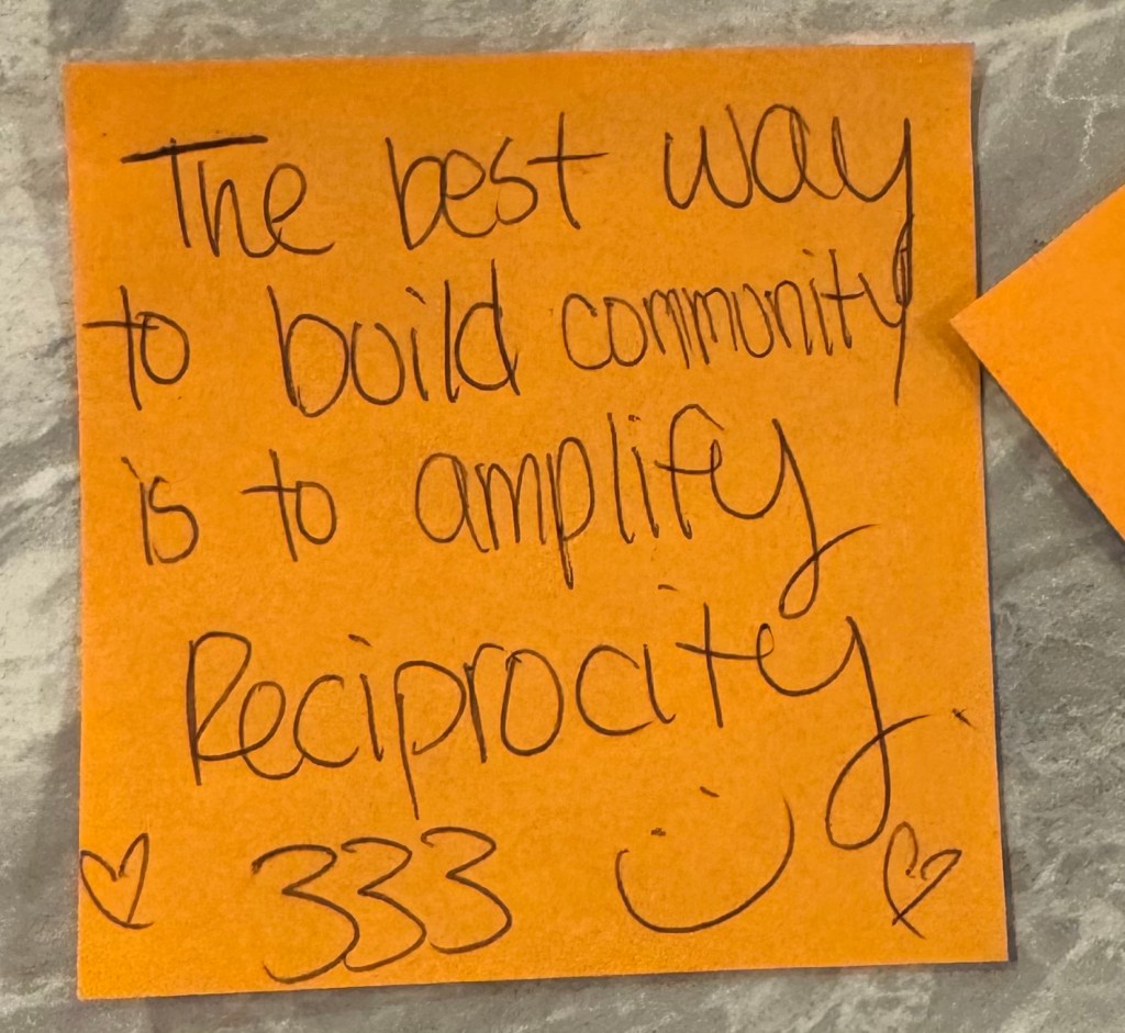 - I knew someone who wanted to be in community but didn’t want to be in transactional relationships which I think meant that they wanted the benefits of community without having to contribute. Sure there are relationships that are purely transactional, and some that are more transactional than one of the people may be comfortable with, but I believe it is unrealistic to expect adult relationships to have NO transactions. And then I found this sticky note to help me explain what I’m saying: