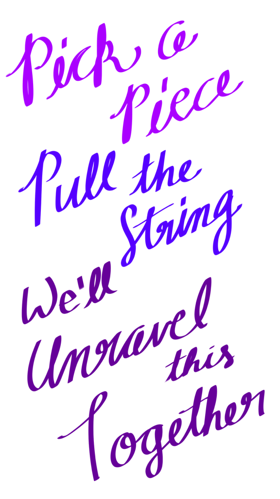 - Pick a piece, and pull that string, and we’ll unravel it together.