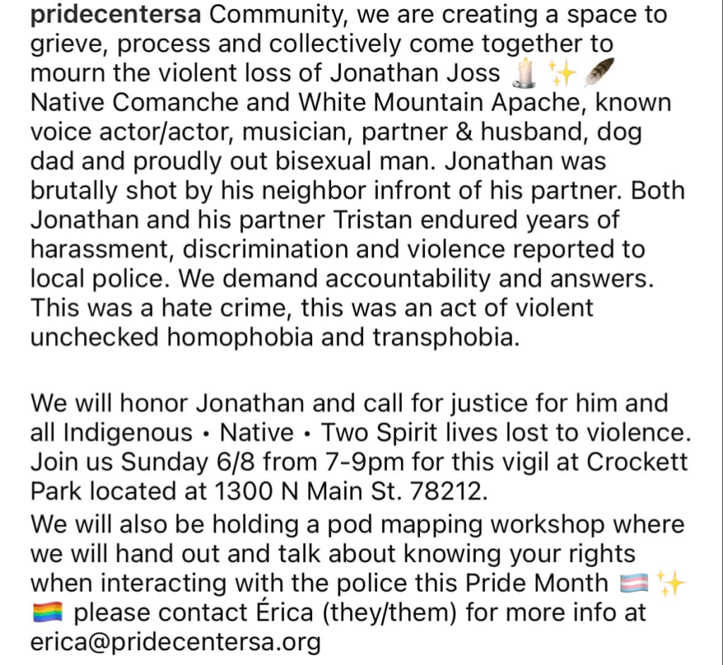 - I wish I did not have to defend Pride when straight people ask why there is Pride Month. More than anything, I wish I did not have examples like Jonathan Joss’ death on the first day of Pride Month. I made my top for pride, and had his name written on my back. It’s the insanity of trying to be proud of who I am, of not being scared to be out, while still honoring those who were killed for doing the same.