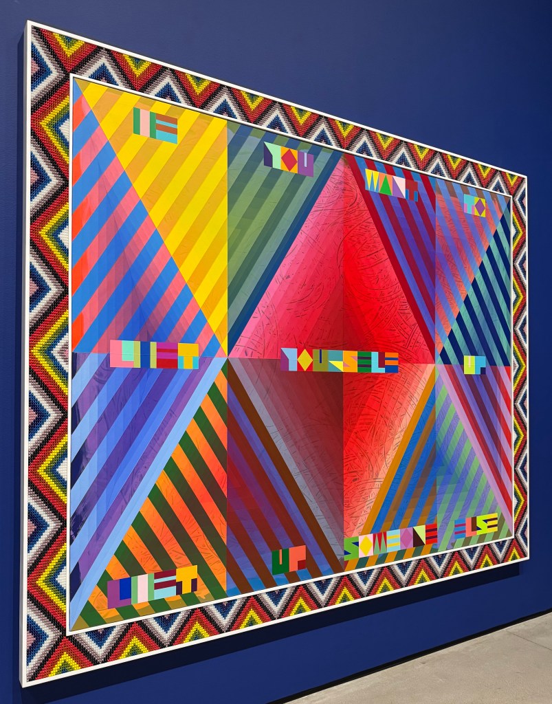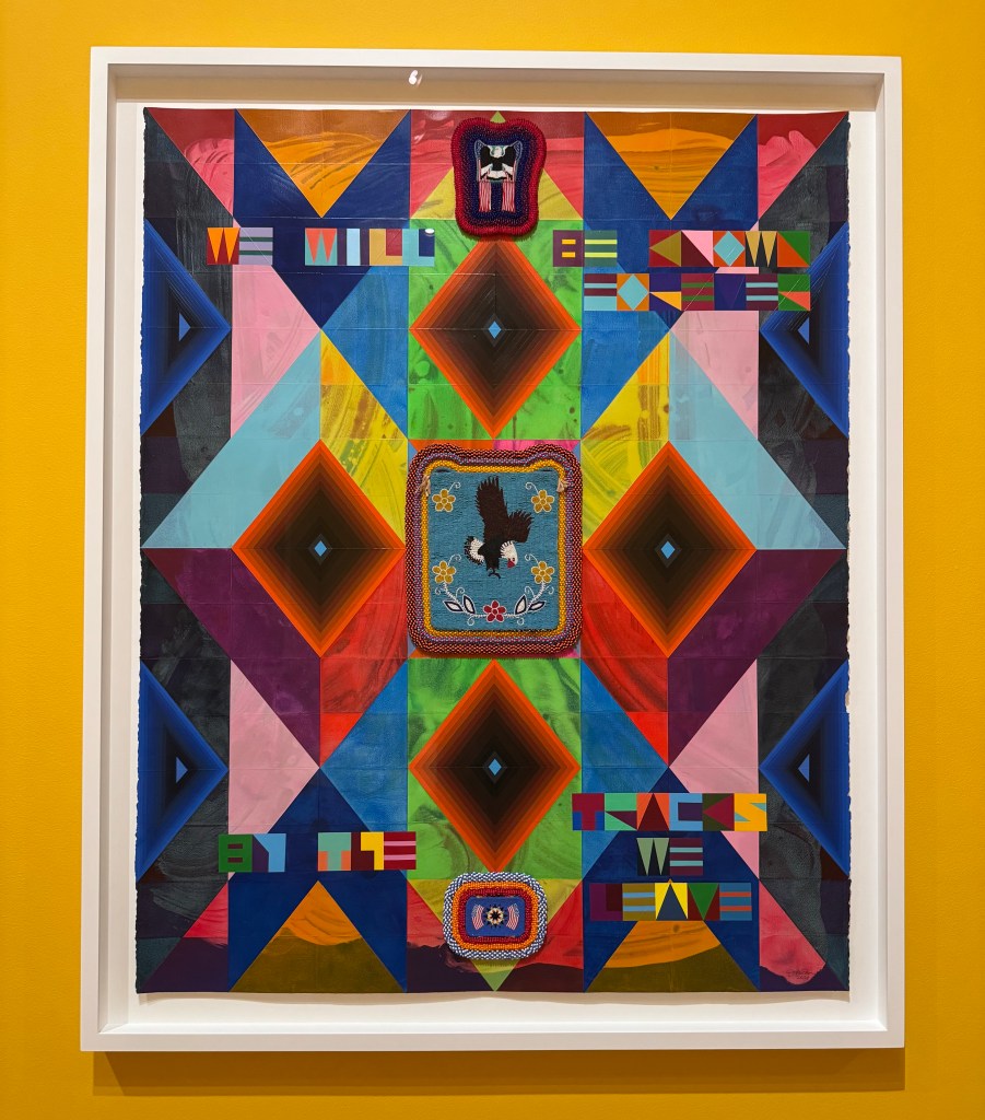 - Went and saw Jeffery Gibson’s exhibit The Space In Which To Place Me. I went for the bright colors, stayed for the Indigenous resistance. I think this site gives a better sense about the exhibit.