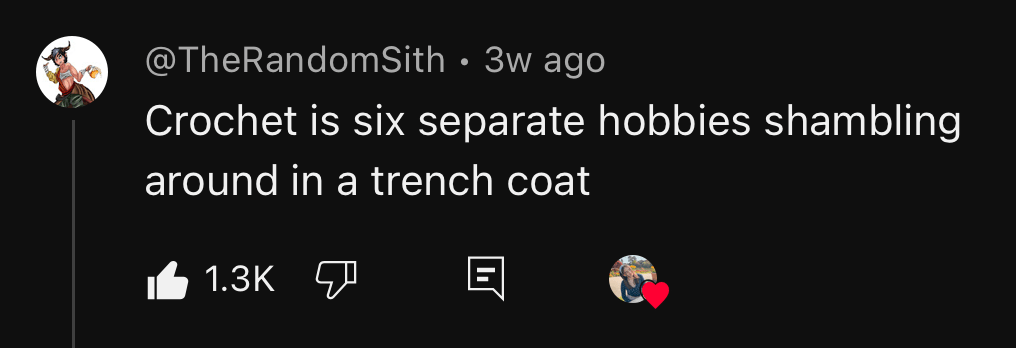 - I’m crocheting, as usual
